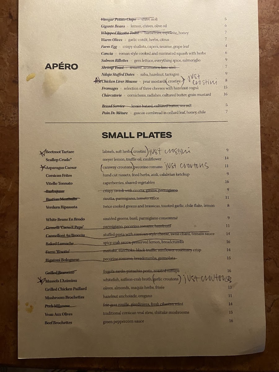 Corsica Wine Bar Menu
